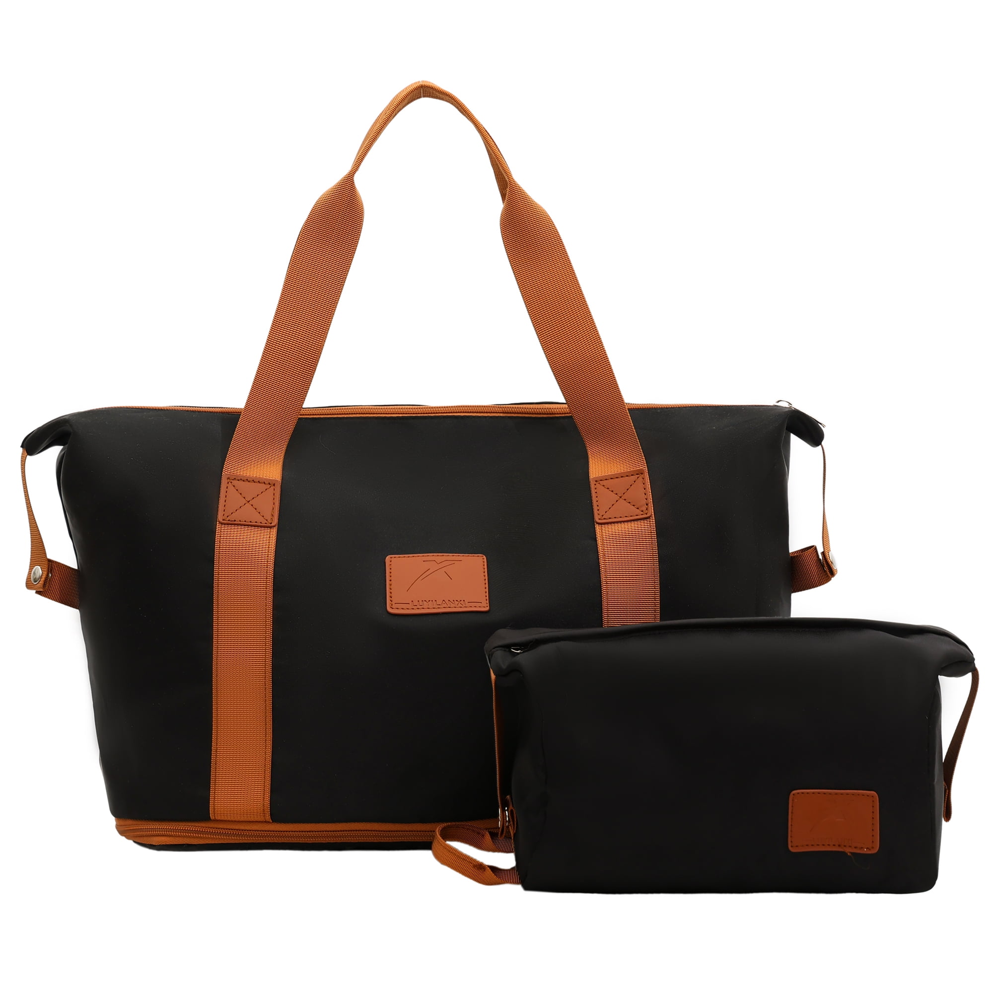 Gynky Travel Duffel Bag 2 Set Weekender Bags for Women Large Expandable with Make up Bag Carry On Overnight Gym Duffel Bags with Wet Pocket Hospital Bags for Labor and Delivery Black